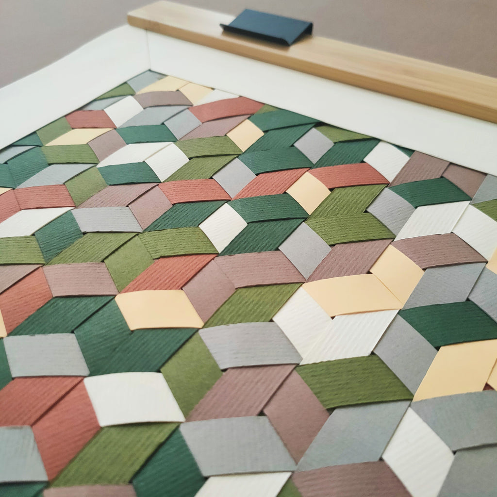 A collection of paper artworks that are made up of interwoven paper strips using specific patterns. Each design has plenty of consecutive lines along with sharp corners that motivate a higher visual response. The applied weaving techniques depend on combining straight lines which promote feelings of stability, serenity and can have endless possibilities.